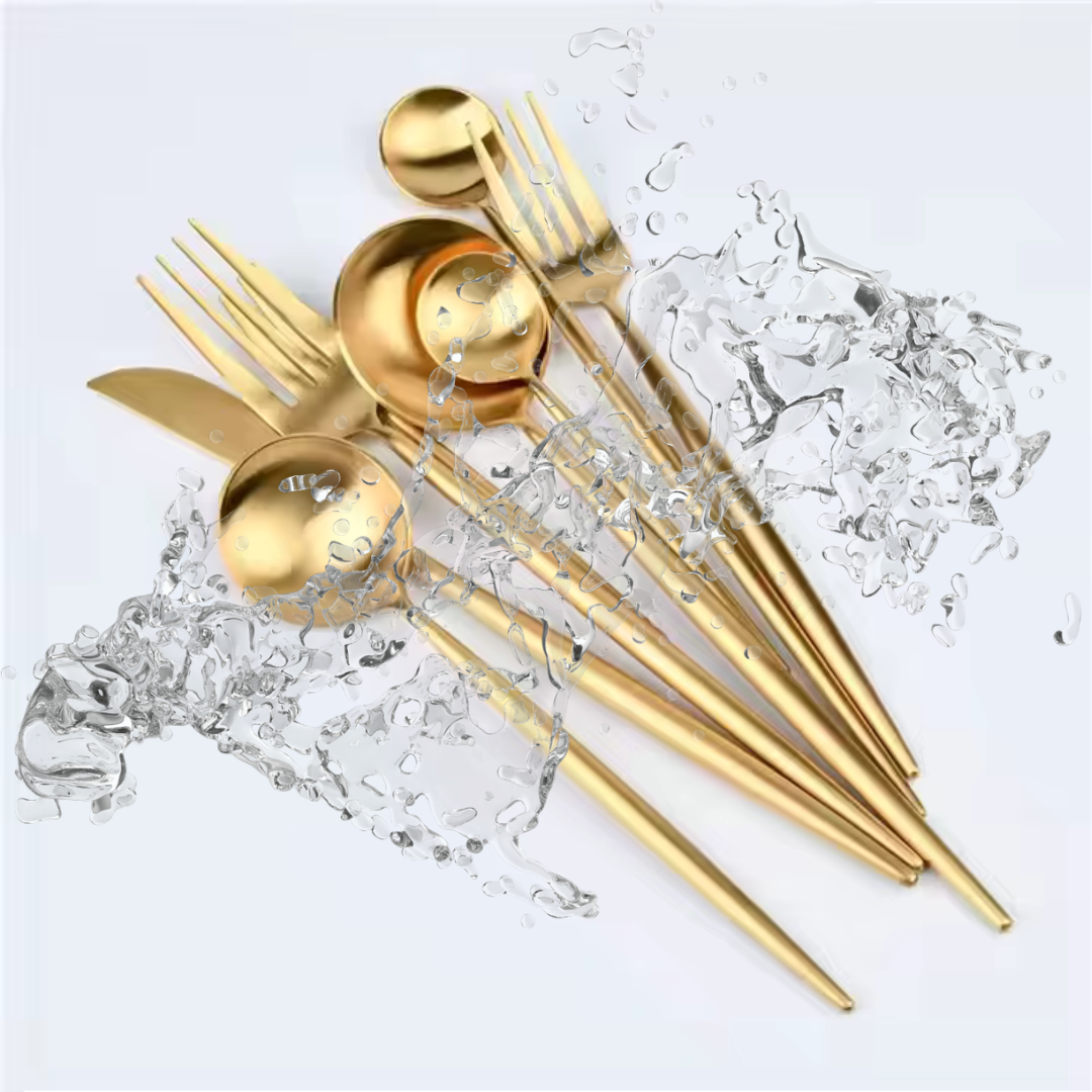 Glänze stilvoll bei jedem Dinner: Das 24-teilige Besteckset in elegantem Gold-Finish bringt königliches Flair auf deinen Tisch – perfekt für feierliche Anlässe und anspruchsvolle Gastgeber:innen.
