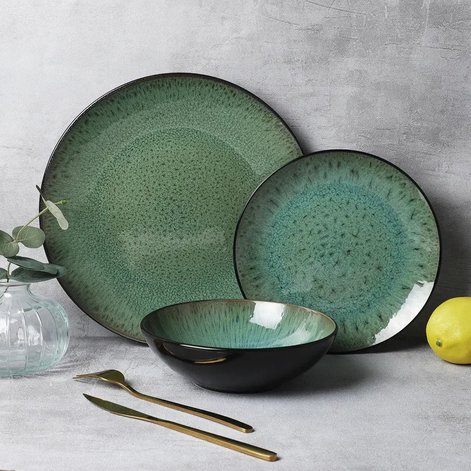 Keramik-Geschirrset „Jade Green“ – 18-teilig für 6 Personen