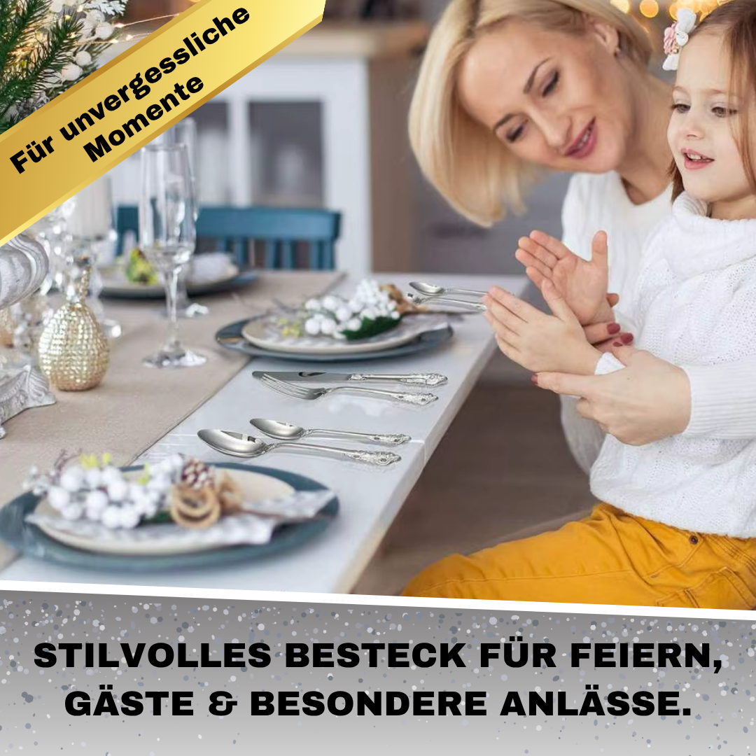 Royal Besteckset Silber-Gold – 24-teilig aus Edelstahl, mit Barock-Design, perfekt für Alltag, Gäste & besondere Anlässe