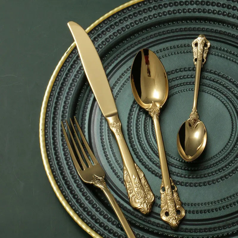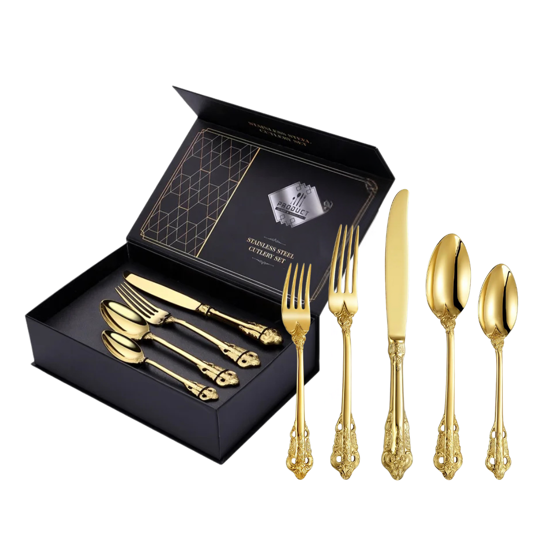Royal Besteckset in Gold – 24-teilig aus Edelstahl, mit Barock-Design, für stilvolle Dinner & täglichen Gebrauch