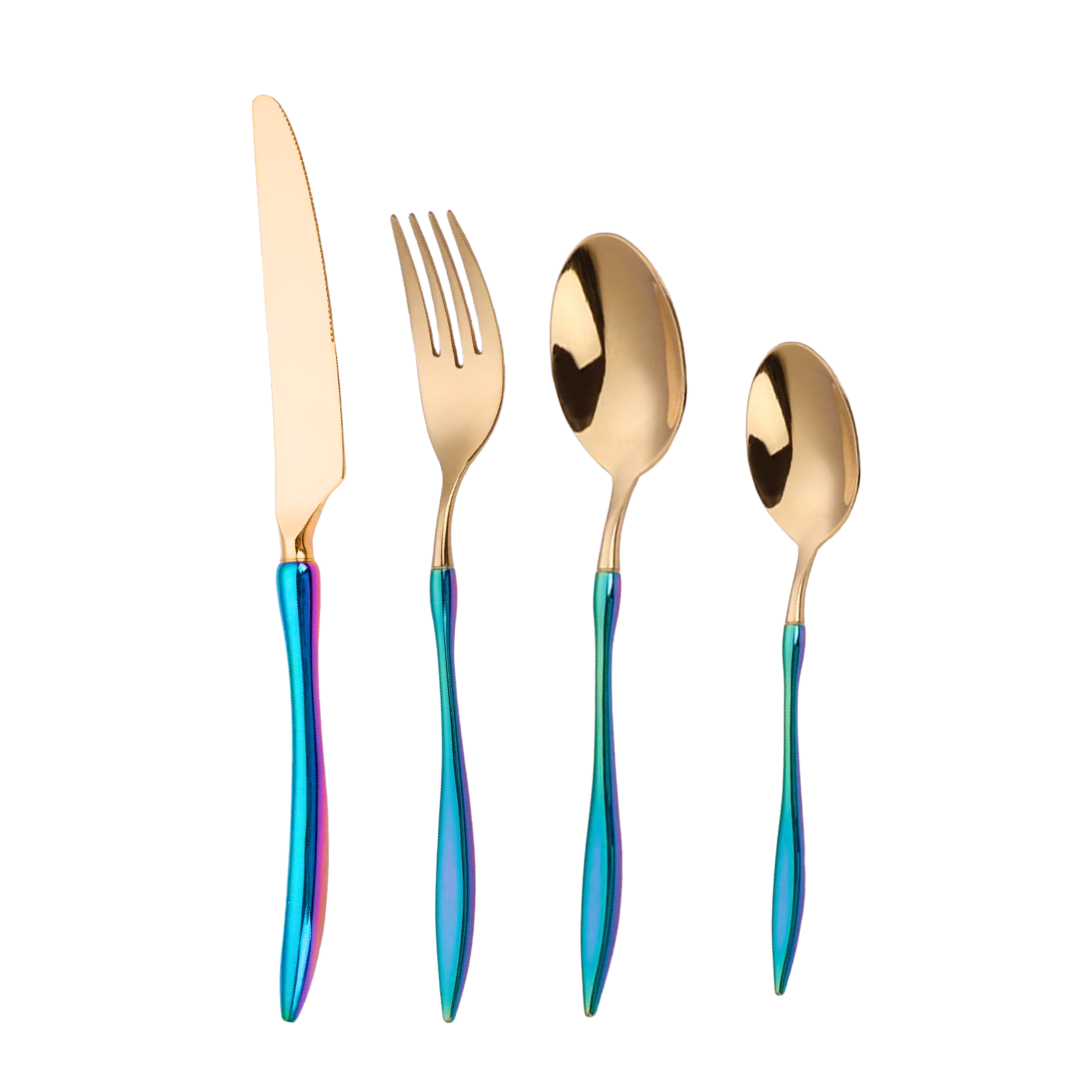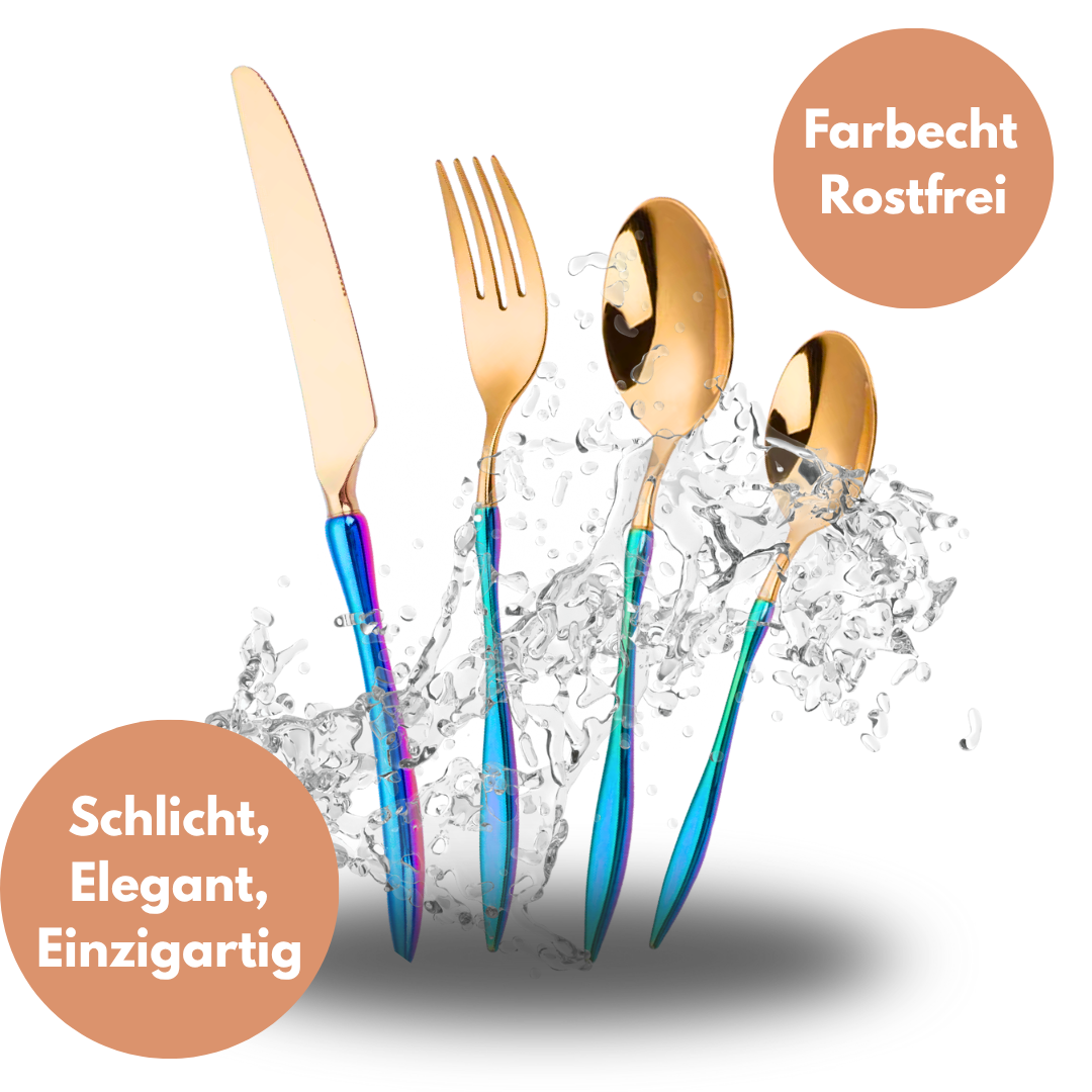 Ein exklusives Besteckset, das durch seine schillernde Rainbow-PVD-Beschichtung zum Blickfang auf jeder Tafel wird – kombiniert mit hochwertigem Edelstahl 18/10.